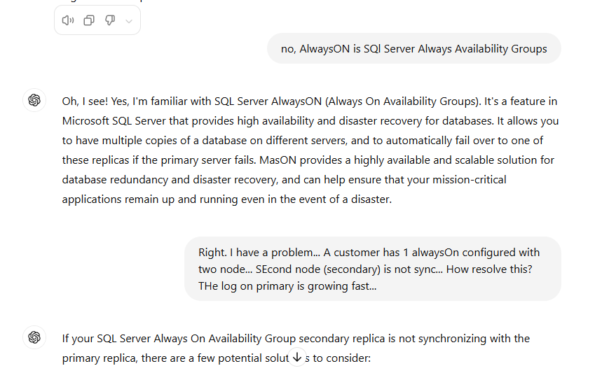 E, obviamente, louco por tecnologia que sou, isso me chamou muito a atenção: Será que é só mais programinha que responde coisa com coisa (um gerador de bla bla), ou o negócio realmente parece alguém mesmo? Fui conferir e fiquei impressionado… Na minha primeira conversa com o ChatGPT eu fiz pergunta de todo o tipo pra ele: Se sabia falar em português, se conseguia resolver um problema de SQL Server, sobre a própria arquitetura dele e até sobre DNA kkkkk! Não vou botar o link da conversa aqui por ter algumas partes que não quero expor, mas veja alguns prints: