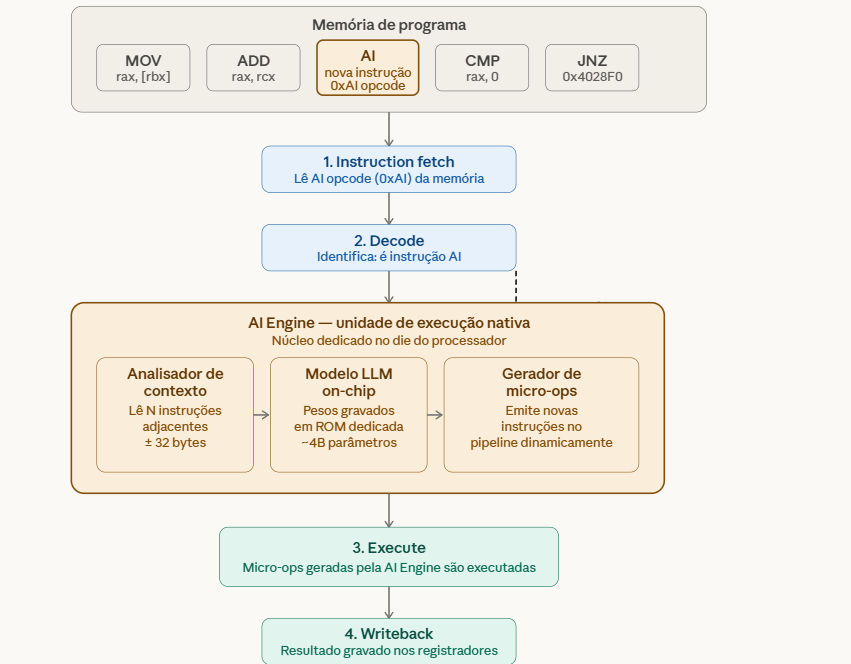 Hoje o mundo acordou com a mais nova notícia bombástica do mundo de computação: Uma nova instrução estará disponível a partir do segundo semestre de 2026 em processadores que seguem a arquitetura x64: A instrução AI.